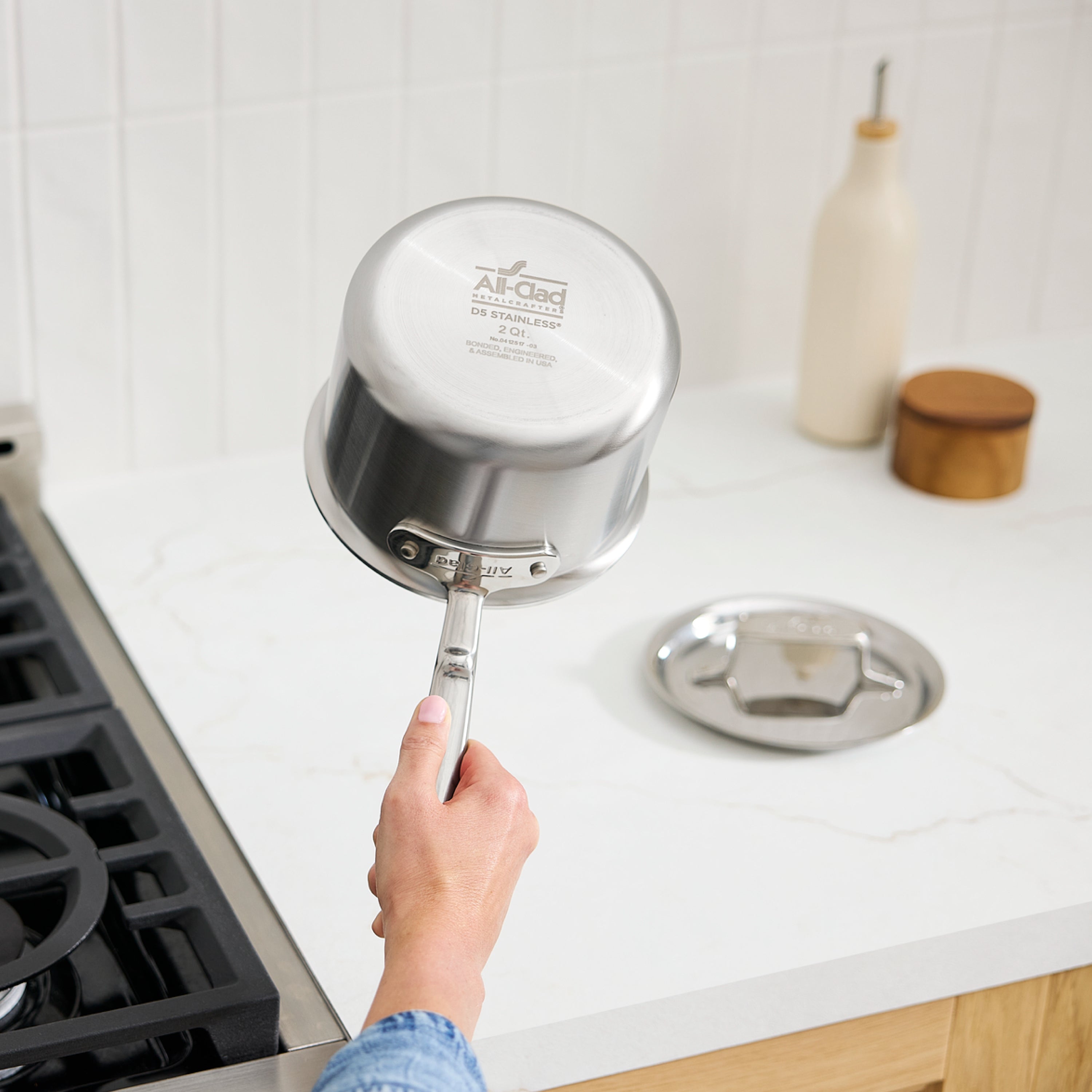 All-Clad - 3 QT D5 Brushed Saucepan With Loop Handle & Lid - BD55203