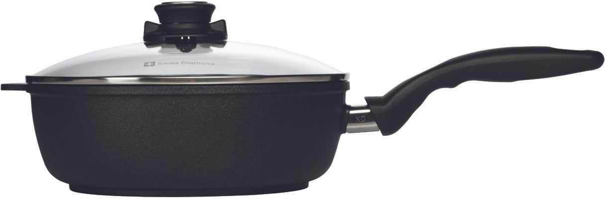 The Swiss Diamond XD series features a reinforced nonstick surface (real diamonds in a high quality composite) which provides years of trouble-free cooking and easy clean-up. Its extra thick, cast aluminum body with a perfectly-flat base will not tip/spin or warp as it provides uniform heat distribution. The rivet-free cooking surface provides maximum protection against bacteria while the comfortable, ergonomic handles are designed to stay cool on the stovetop. Oven safe to 500°F (260°C).