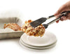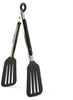 Multipurpose, two mini tools in one! Use them as tongs when you are gripping and lifting food and as a spatula when you are flipping and serving food. Perfect for salads, pasta, pastries, candy, bacon, fish, and pancakes. Slotted spatula quickly drains liquids and oils for healthier foods with less mess. Great for nonstick cookware. Stainless steel frame. High heat nylon head, heat resistant to 450°F/230°C. Push down on hang hole to open and pull up on hang hole to close. Hang them with the hanging loop after use for space saving. Dishwasher safe.