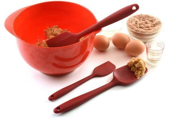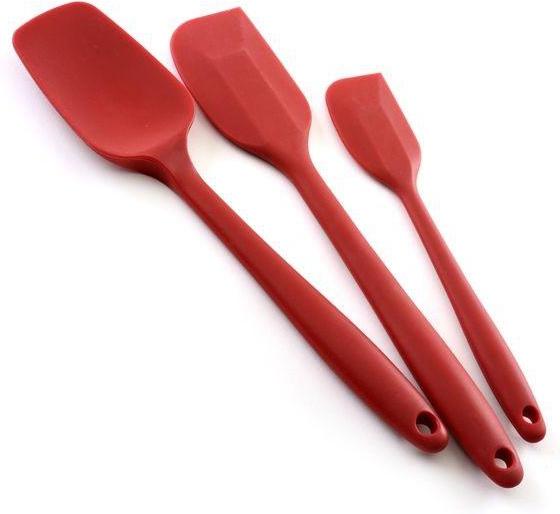 All three feature a seamless, solid, one-piece design that is both flexible and durable. This set will be a staple in your kitchen. The go-to essentials for everyday cooking! Stir simmering batches of food. Ice cakes and scrape bowls clean. Get into tight spots and scoop every last drop. Mix, scoop and push batter into corners. Scrape out bowls and blenders easily with the spatulas flexible heads. Safe for glass, nonstick, enamel and porcelain. High heat resistant to 450°F/230°C. Easy to clean. Dishwasher safe.