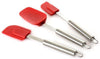 This set will be a staple in your kitchen. The go-to essentials for everyday cooking! Stir simmering batches of food. Ice cakes and scrape bowls clean. Get into tight spots and scoop every last drop. Mix, scoop and push batter into corners. Scrape out bowls and blenders easily with the spatulas flexible silicone heads. Safe for glass, nonstick, enamel and porcelain. Handles are made of stainless steel. Dishwasher safe.