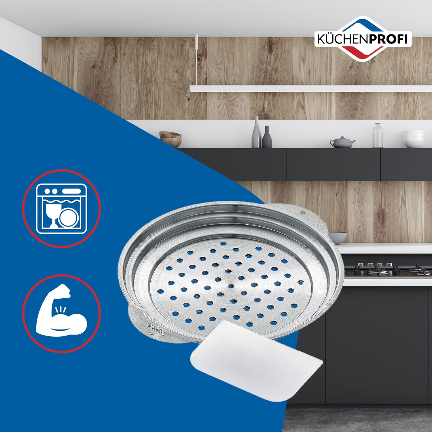 The Kuchenprofi 10.5" Stainless Steel Spaetzle Lid with Scraper is the ideal kitchen tool for making traditional German spaetzle (egg noodles) with ease. Designed for both home cooks and professional chefs, this high-quality stainless steel lid helps you effortlessly create perfect spaetzle every time.