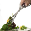 Features a 3-pronged fork and a flat, round surface to secure salad in place. Polished stainless steel.