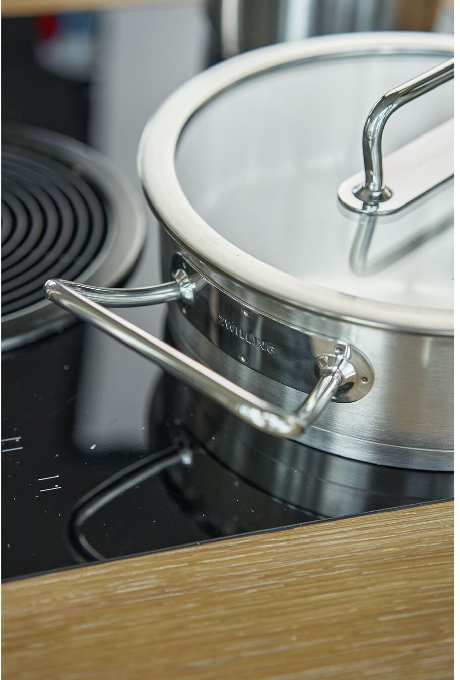 We are sure: Born hosts will love the high-quality cookware from the ZWILLING Pro series. Because this series sets standards in terms of quality, diversity and, above all, design. This serving pan should not be missing at the next dinner with friends. It has a diameter of 28 cm and inspires in every kitchen and on every stove, including induction. Thanks to the SIGMA Classic + sandwich base, the serving pan warms up particularly quickly and evenly and stores the heat for a long time. The pan with a high rim also allows sauces to be cooked directly in the frying pan. Thanks to the cool stainless steel handles and the wide pouring rim, these can then be poured out very easily and, above all, without dripping. The elegant design immediately catches the eye on the table, especially the elegant satin finish.
