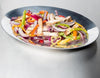 This aluminum sizzling platter maintains the heat of your perfectly-grilled meats and food while the black wooden underliner which is sold separately (item #80090) avoids burning your servers as well as customers. The tapered sides also ensure that juices and excess liquids stay within the platter's walls and off your tables. Use this aluminum sizzler platter to serve a variety of dishes at your restaurant or catered event! Great for any occasion.