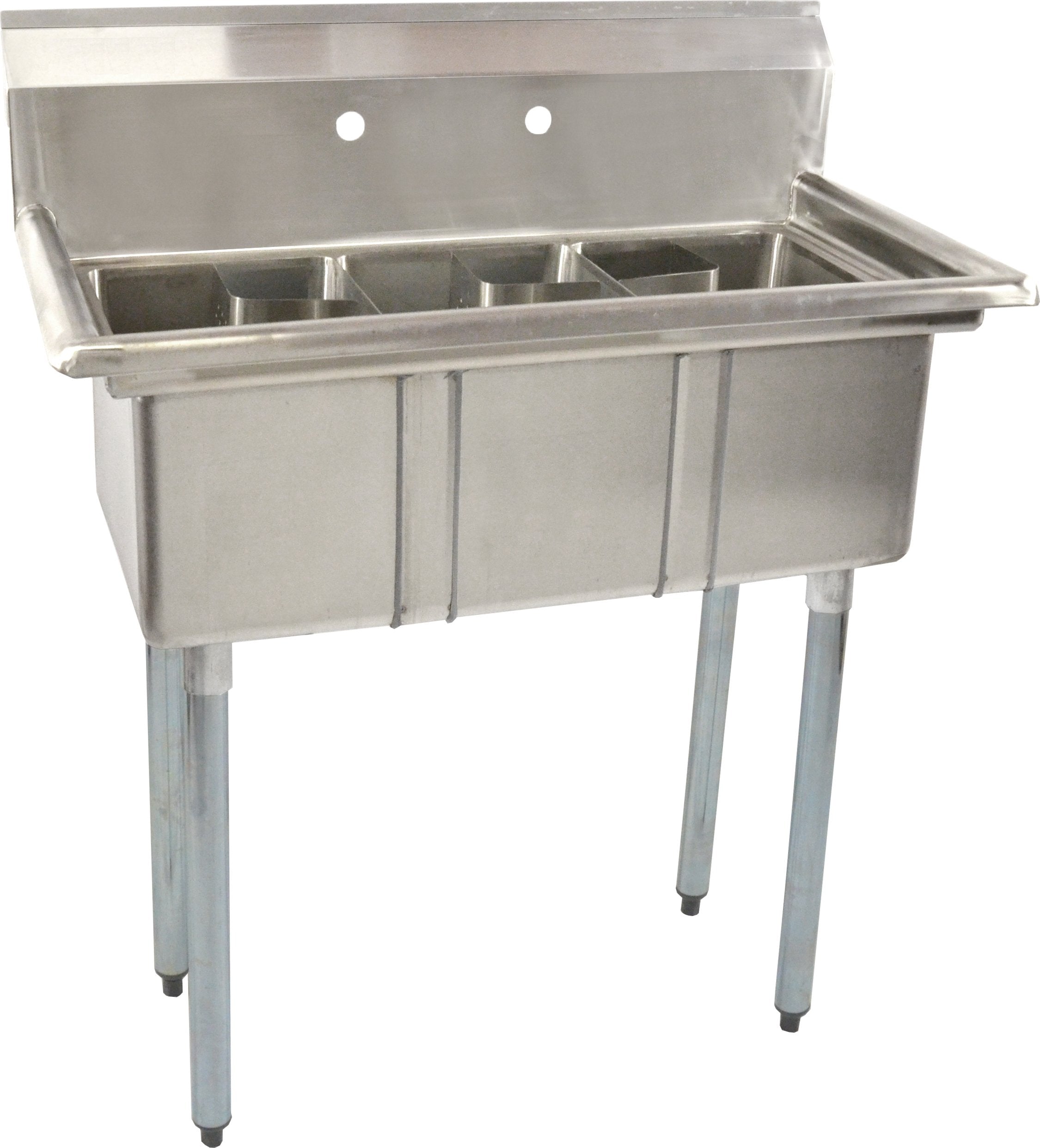 This 18-gauge stainless steel three-compartment prep/utility sink is perfect for warewashing duties in the busiest of restaurants. Nice and deep for easy cleaning of pots and pans. This heavy duty three-compartment pot sink also features a rolled rim edge and drain guards.