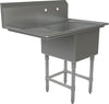 Sink, 1-compartment, 39"W x 24"D x 45"H overall size, (1) 18"W x 18" front-to-back x 13" deep compartment, (1) 18" left drainboard, 10"H backsplash, (1) set of splash mount faucet holes with 8" centers, 1-1/2" diameter bullnose edge on front & sides, (1) 3-1/2" diameter center drain, includes (1) drain basket, 18 gauge stainless steel construction, galvanized legs with side & rear bracing, adjustable bullet feet, cNSFus, KD. Actual item may differ from image.