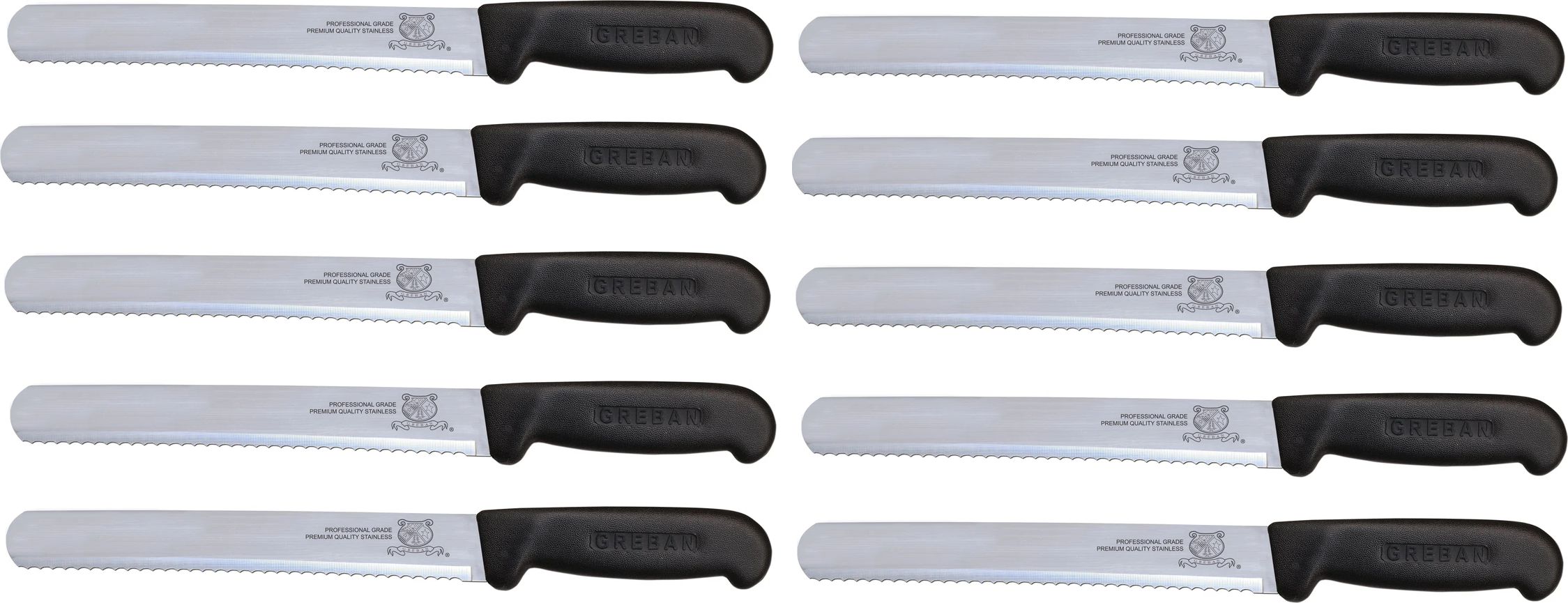 Omcan - 10” Straight Wave Edge Slicer Knife with Black Polypropylene Handle, Pack of 10 - 12644