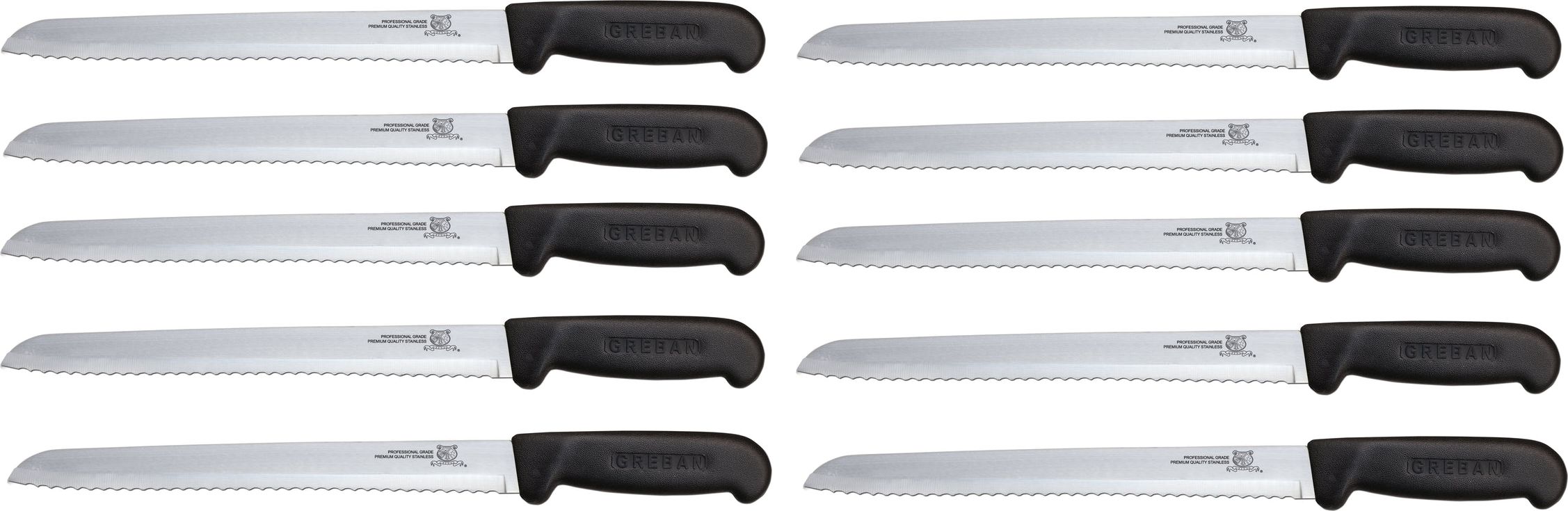 Omcan - 8” Slicer Knife with Narrow R-Wave Blade & Black Handle, Pack of 10 - 12603