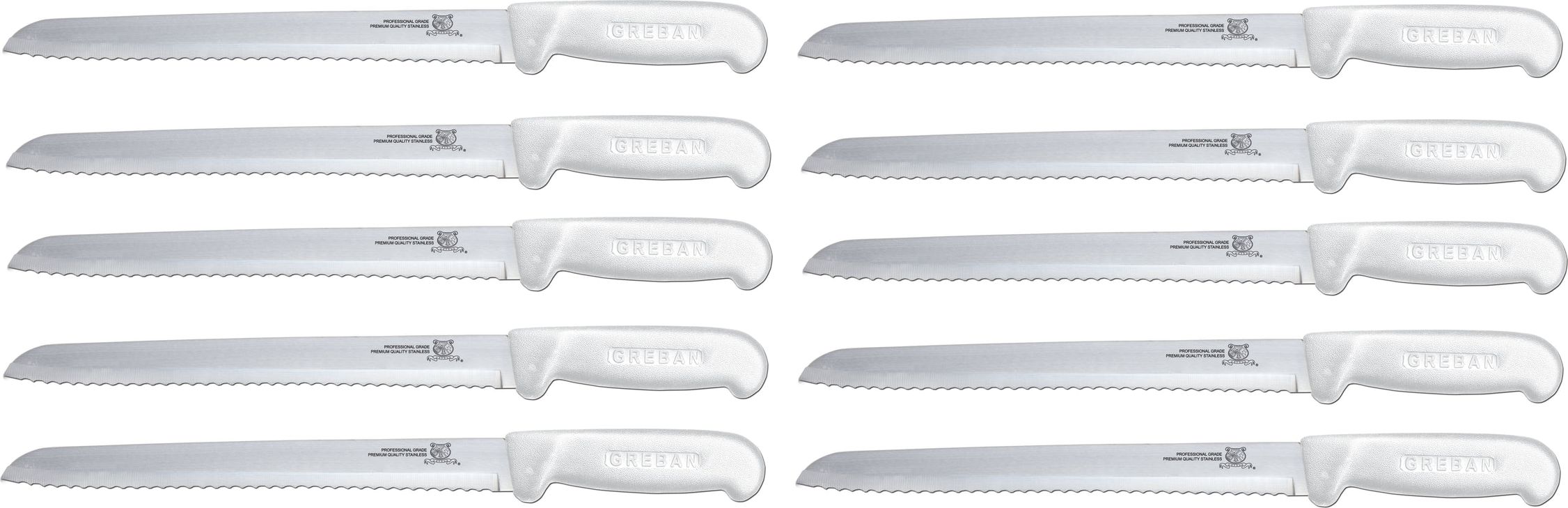 Omcan - 8” Slicer Knife with Narrow R-Wave Blade & White Handle, Pack of 10 - 12634