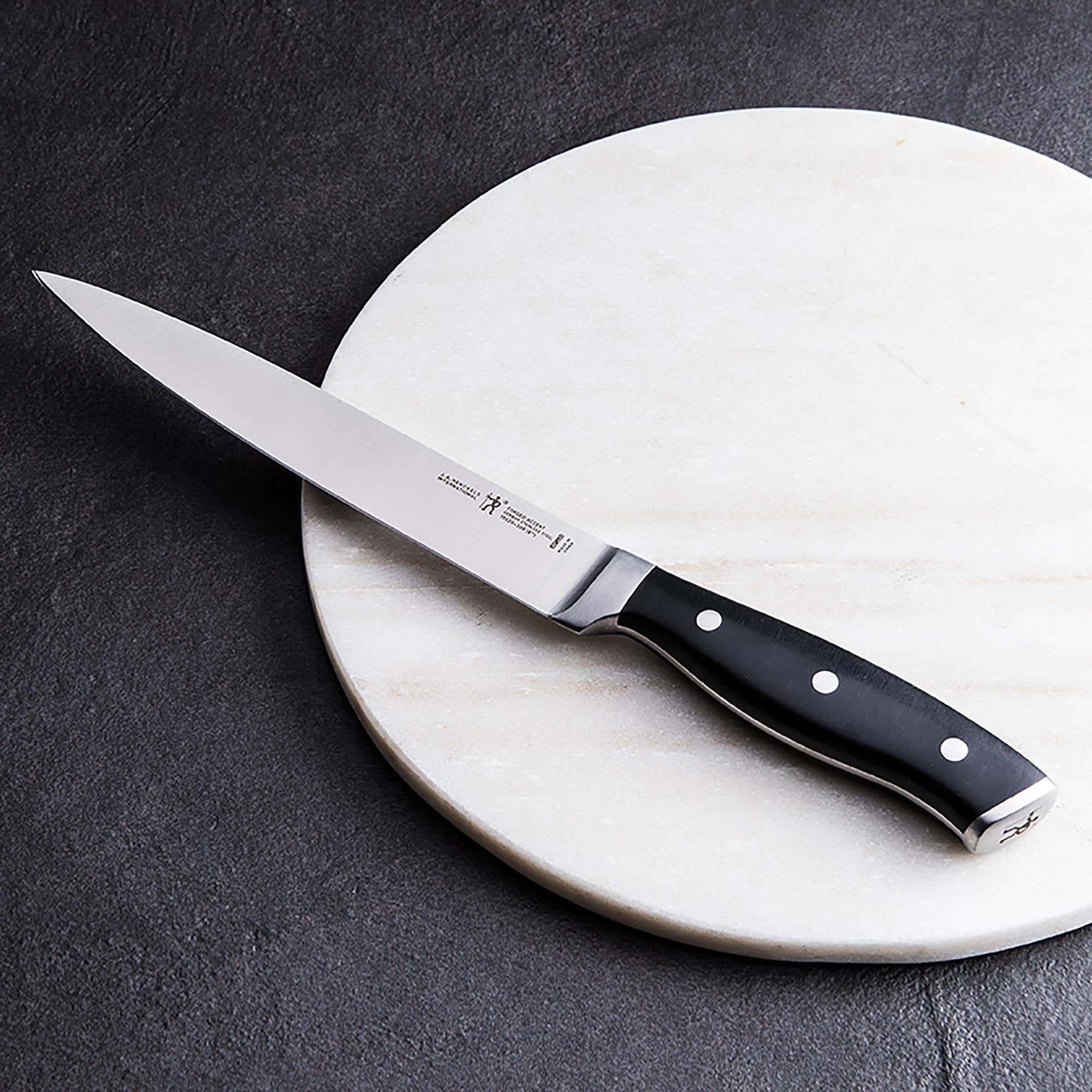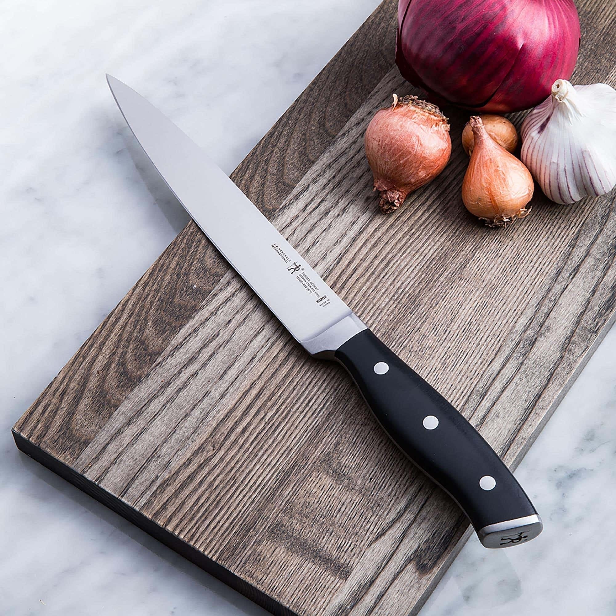 The FORGED ACCENT knife series is the definitive choice of hobby chefs seeking quality cutting performance and traditional style. Precision forged from high quality Stainless Steel, these blades have been tempered then honed for lasting sharpness. A full bolster provides added weight for perfect balance and the stylish three-rivet handles ensure a comfortable grip for easy cutting. Created in 1895 by Zwilling J.A. Henckels, this value-driven brand guarantees the same durability, design and ease of use for which the global company is known. Equip your kitchen with expertise with Henckels.