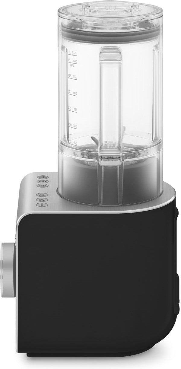 Equipped with a powerful 800-watt motor and stainless steel blades, this blender effortlessly blends even the toughest ingredients to create smooth and consistent results every time. Whether you're crushing ice, pureeing fruits and vegetables, or emulsifying sauces and dressings, this blender delivers exceptional performance and versatility. The variable speed control allows you to adjust the blending speed to suit your desired consistency, giving you precise control over the texture of your recipes. The Smeg Collezione Black Blender comes with a range of convenient features to enhance your blending experience. The intuitive control panel features multiple speed settings and pre-programmed functions, allowing you to achieve the perfect consistency for any recipe with just the touch of a button. The blender also features a pulse function for quick bursts of power, perfect for chopping ingredients or creating chunky textures.