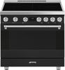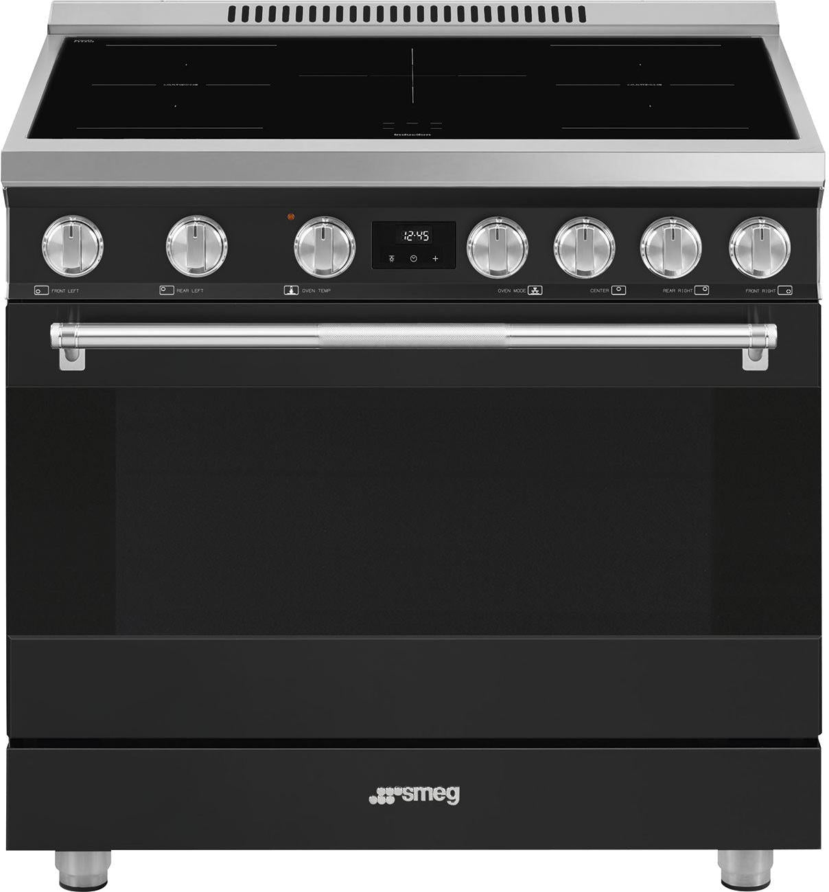 The Smeg 36" Freestanding Matte Black Induction Range combines professional-grade cooking with a modern, sleek design. Featuring advanced induction technology, this range allows for precise and energy-efficient cooking, while the robust oven offers a variety of cooking functions to help you create a range of dishes with ease. The stylish matte black finish, complemented by stainless steel control knobs and handle, makes this range a standout addition to any kitchen.