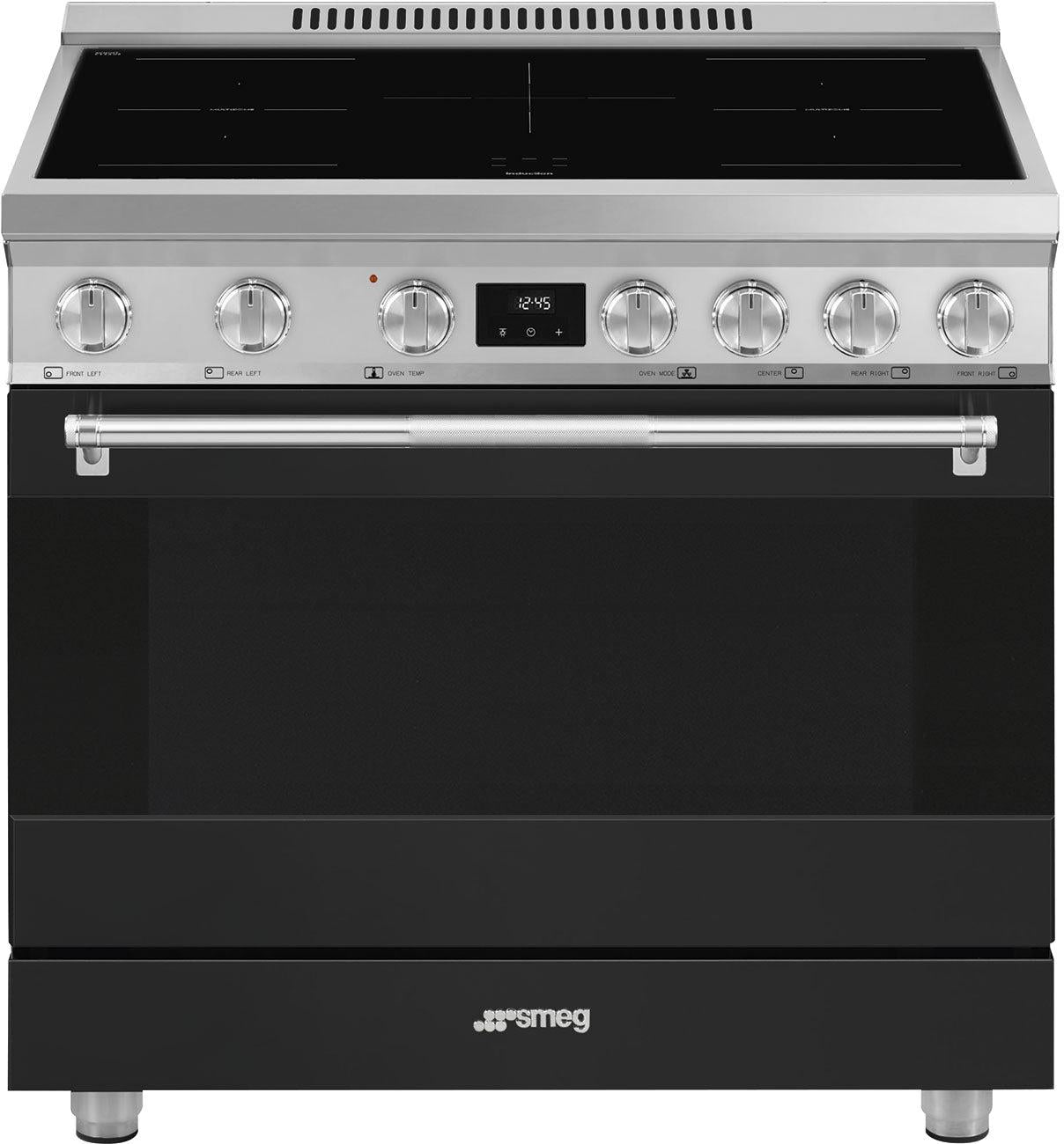 Smeg - 36" Freestanding Matte Black Stainless Steel Induction Range - SPR36UIMANX