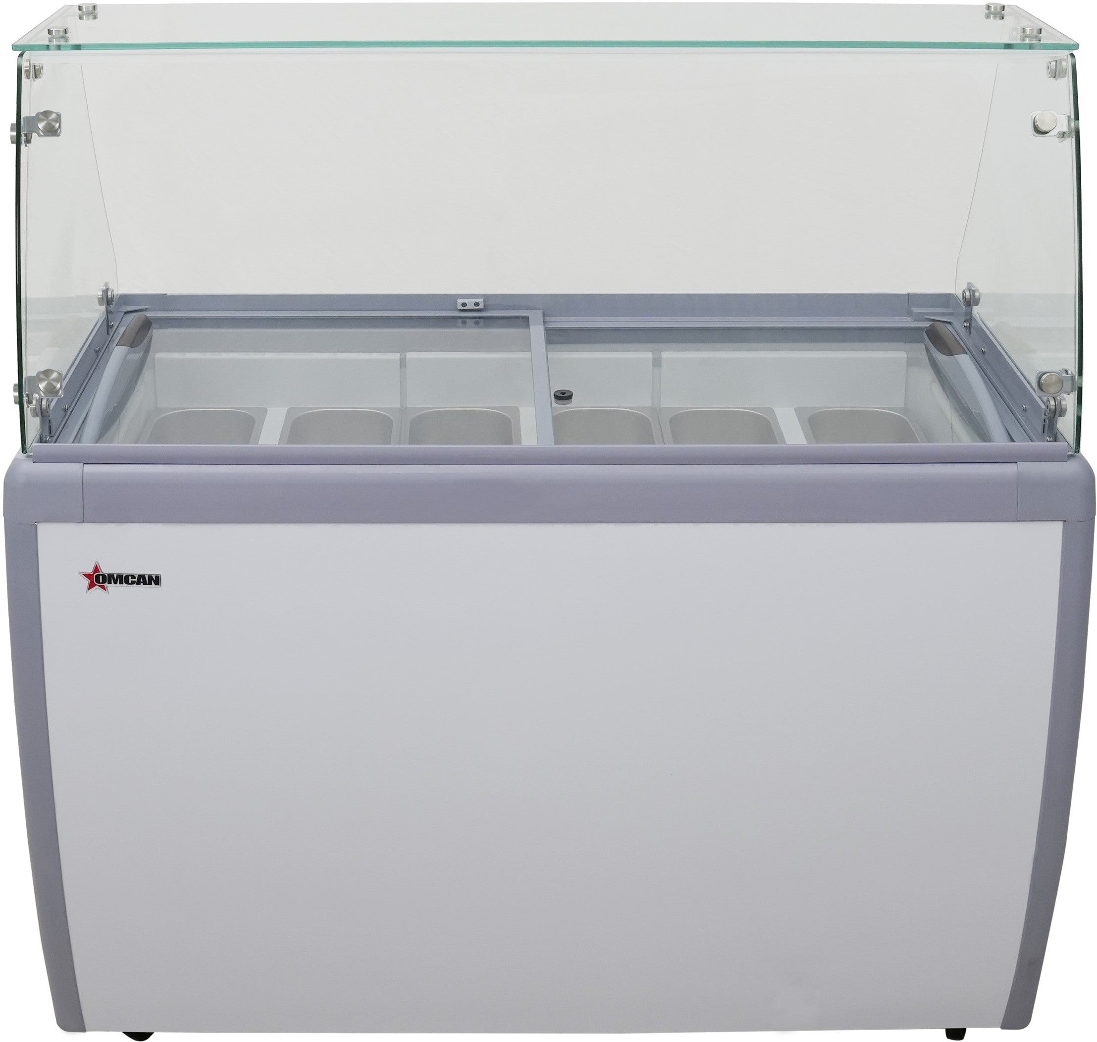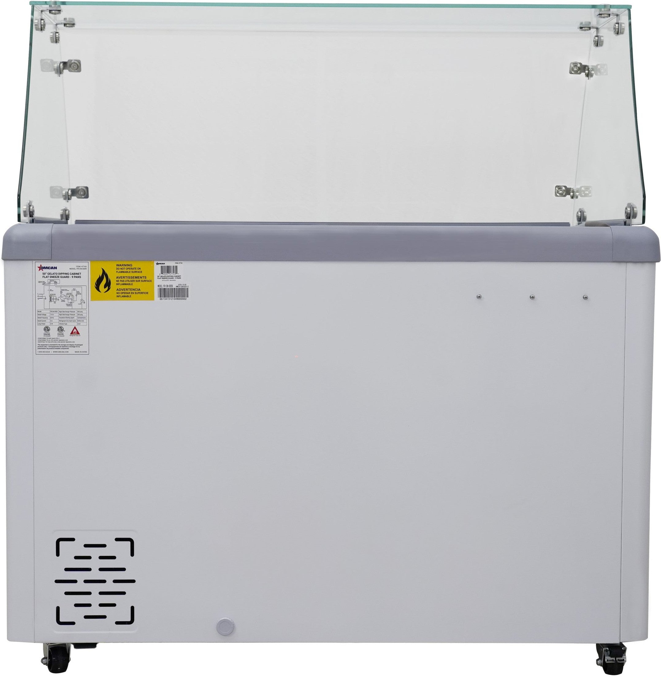 Omcan - 50″ Nine Pan Gelato Dipping Cabinet with Flat Sneeze Guard and Pans - 47743