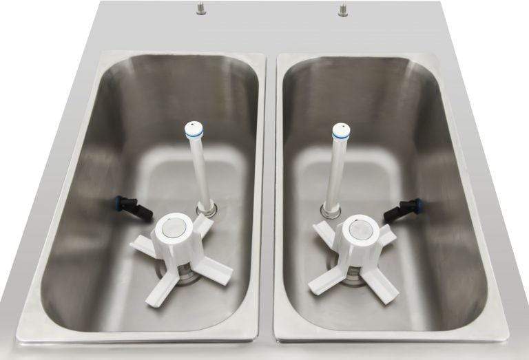 - Two 15 Liter Mix Hoppers:This model boasts two 15 liter mix hoppers, with a magnetic drive agitator design that helps maintain consistent product temperature, in addition to preventing settling.