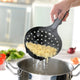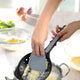 Make spaetzle right over the pot, just like grandma used to do - just easier, using the spaetzle spoon and scraper made of hygienic nylon material. Fits pot sizes from 18 to 24 cm. The soft-grip handle and finger guard make safe work guaranteed. The large flexible dough spatula allows working without residue. After use, clean it in the dishwasher and fasten the spatula in the spoon for storage.