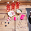 The front part of the spatula is from hardwearing silicone and resistant to temperatures up to +220°C and insensitive to fat, oil and acids. The functional part has a diameter of 2.8 cm and has a soft and a hard side.