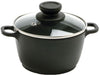 Nonstick mini pot with vented, tempered glass lid is perfect for cooking small portions. Rounded interior for easy stirring and beating. Commercial quality heat responsive cast aluminum. Thick 5mm base for even heat distribution and no warping. Handwashing recommended.