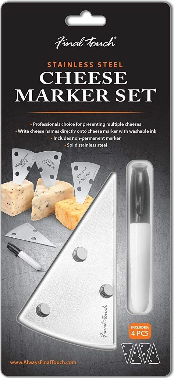 Add these stainless steel cheese markers to each of the cheeses being displayed to help guests identify each cheese with ease. Just use the included non-permanent marker to write the cheese name and wipe away when finished.