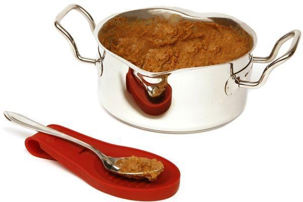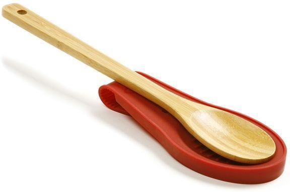 Flexible silicone spoon rest allows utensil to be slightly raised for convenient usage. Perfectly fits in a drawer, cupboard or cabinet shelf for compact storage. Heat resistant silicone to 482˚F/250˚C.