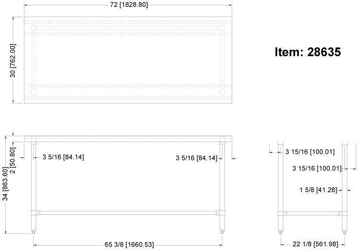 These tables are ideal for kitchen preparation and can hold heavy equipment. Very easy to clean. This work table features an 18-gauge 430 Stainless Steel flat top shelf, 18-gauge galvanized hat channel, galvanized leg and socket, galvanized “U” shape leg brace with aluminum socket.