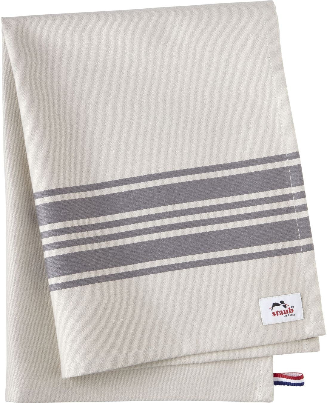Cooking is fun, but Cast Iron can get very messy. Keep yourself and your kitchen clean from splashing water, splattering fat or spilled tomato sauce with this practical kitchen towels. The STAUB Kitchen Towels are designed with a classic look to fit any kitchen. They are available in one size, measuring 70 * 50 cm, the perfect size for any mess. Made of 100 % cotton, the apron can be washed in the machine and is very durable. Its timeless design includes dark stripes on an off-white background, making it a harmonious match for a country style kitchen as well as a modern restaurant. A small label in red, white and blue stripes is a reminder of STAUB’s French heritage.