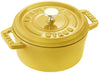 The Staub 0.26 QT Mini Cocotte in Citron is a versatile and stylish addition to your kitchen, designed for gently cooking a variety of dishes. This round, cast-iron, enamelled cocotte features two handles and a snug-fitting lid. With a diameter of 10 cm and a height of 7 cm (without the lid), it has a capacity of 0.25 litres, making it perfect for individual portions, side dishes, or desserts. The enamel coating ensures even heat retention and distribution, while the black enamel interior preserves the flavor of your food. Suitable for all types of cookers and ovens, this mini cocotte can also be used as a baking tin for small cakes or to store fresh desserts. Part of the La Cocotte series, this cookware combines functionality with an aesthetic design, and is easy to clean, making it ideal for both sweet and savory dishes. Enhance your cooking experience with the Staub 0.26 QT Mini Cocotte, perfect for creating delicious, carefully prepared dishes with ease.