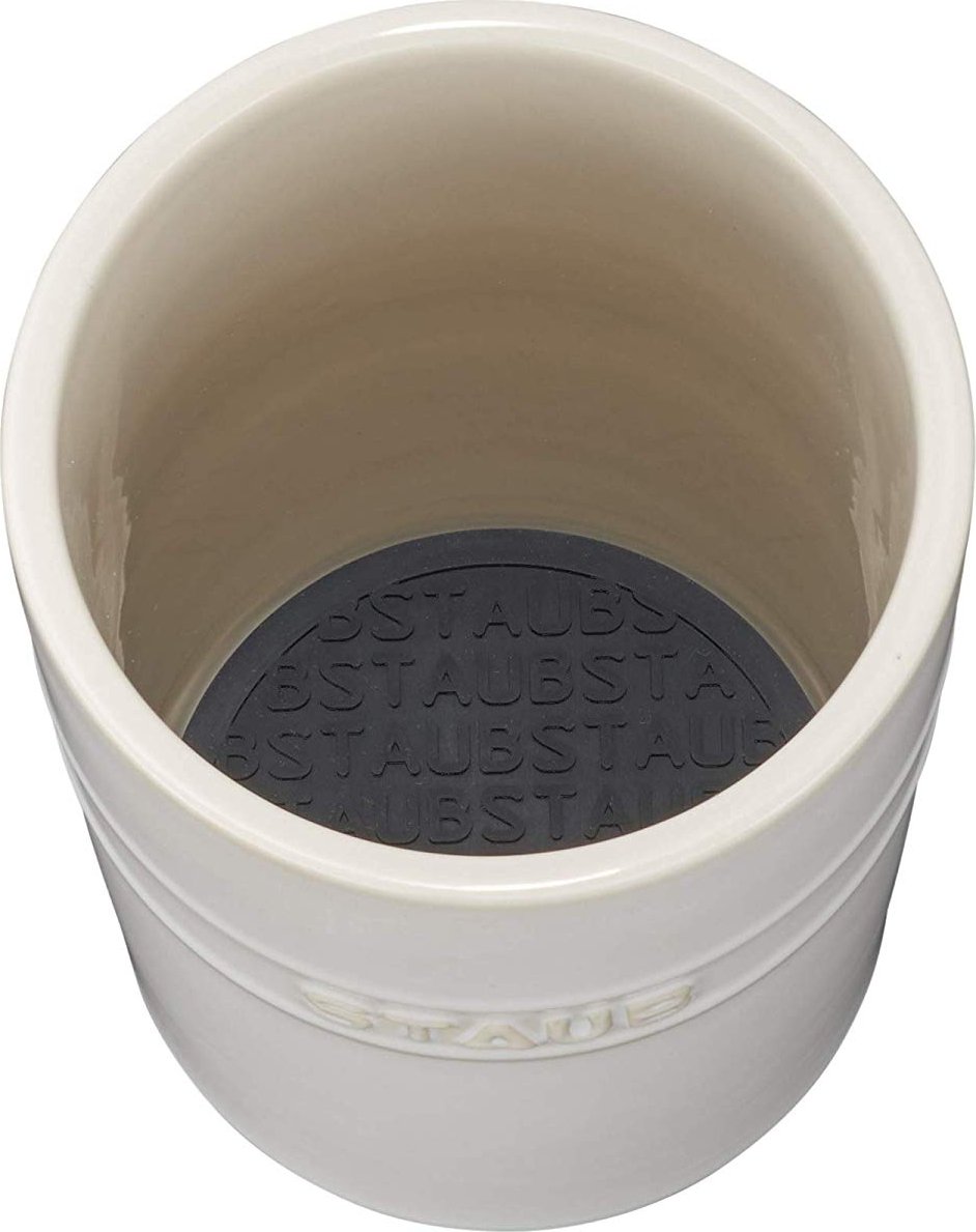 You will always have your cooking utensils on hand and yet well-arranged on your worktop with this utensil holder from the Staub Ceramic range. The compact holder has a diameter of 11 cm and saves space. The silicone mat provided ensures that the holder does not slip and also provides for cushioning.