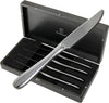 Reflecting the design tradition of a bygone age, this sleek pattern feels good in your hand and looks beautiful on your table. Restaurant durability and elegantly designed, select a style that compliments your table at an everyday price. Set includes: four stainless steel solid handle steak knives.
