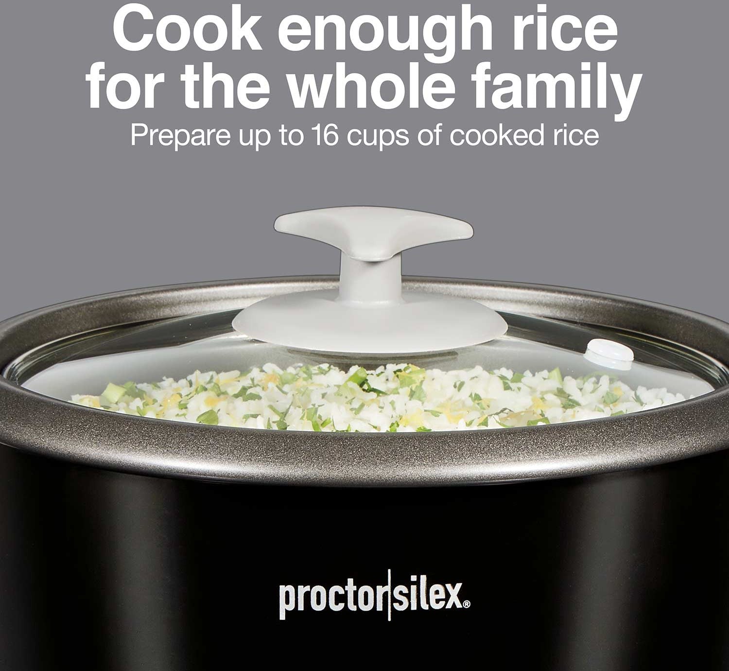 The Proctor Silex 16 Cup Rice Cooker & Food Steamer is designed to simplify meal preparation with its generous capacity and versatile cooking capabilities. Whether you're cooking rice, grains, steaming vegetables, or preparing oatmeal, this rice cooker delivers consistent results with minimal effort. The Proctor Silex 16 Cup Rice Cooker & Food Steamer is an essential kitchen appliance for families and individuals looking to simplify cooking without sacrificing taste or quality. With its user-friendly one-touch controls, generous capacity, and versatile steaming capabilities, this rice cooker effortlessly prepares a wide range of dishes from rice and grains to steamed vegetables and seafood. Easy to clean and backed by a 3-year warranty, it ensures consistent performance and convenience meal after meal. Ideal for everyday use or special occasions, this cooker is a valuable addition to any kitchen, delivering delicious results with minimal effort.