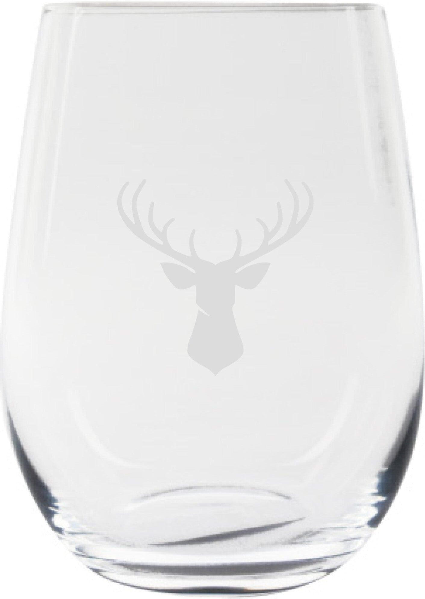 Cuisivin - 12.85 oz Stag Print Stemless Wine Glass, Pack of 6 - 8505ANM.STAG