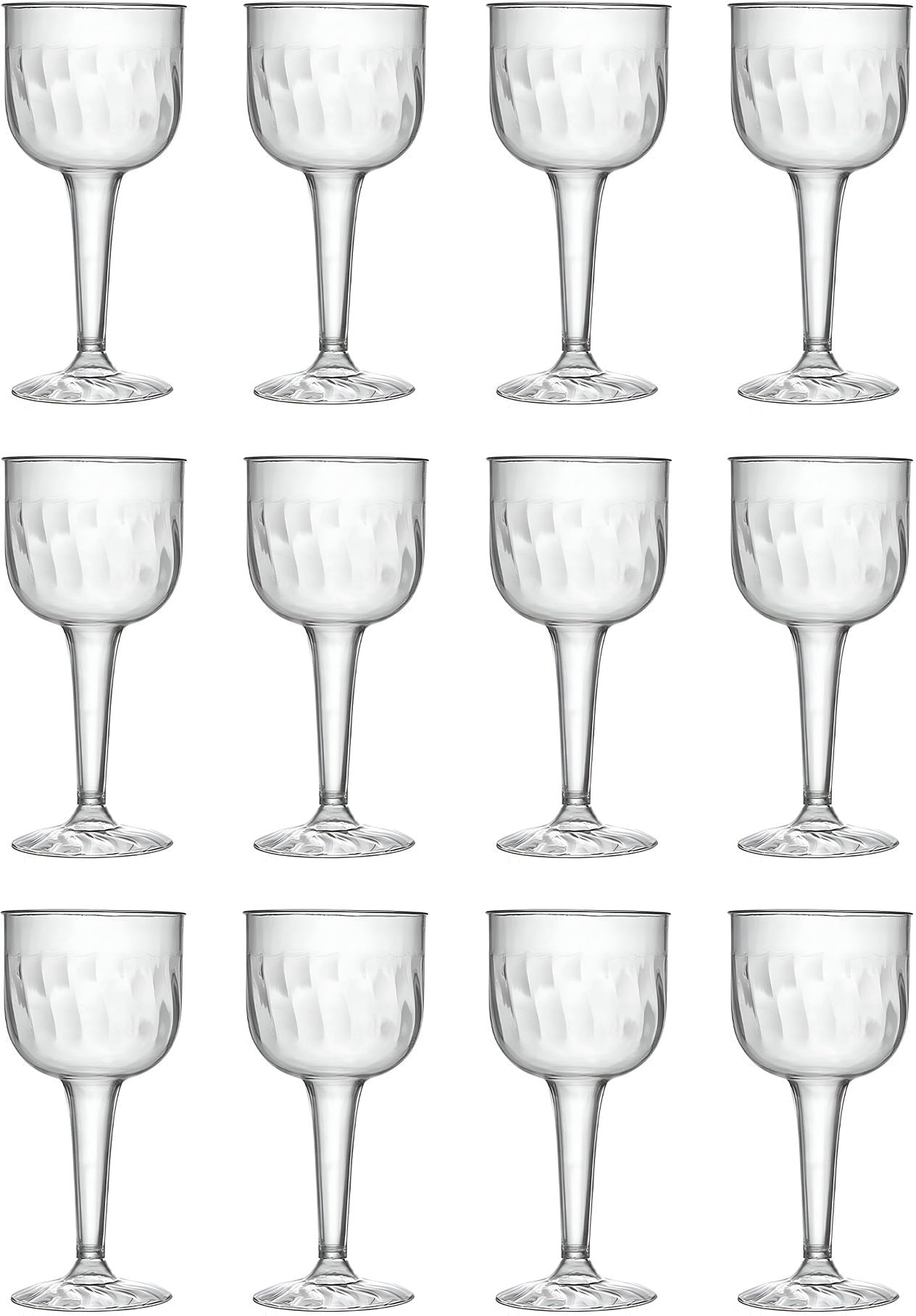 With a top diameter of 3 inches, a bottom diameter of 2 1/8 inches, and standing at a height of 6 1/4 inches, these goblets are meticulously designed to offer a visually appealing and structurally sound form. This thoughtful design ensures not only an elegant presentation but also a comfortable and secure grip for the guests, enhancing the overall drinking experience. The clear plastic construction of these goblets mirrors the elegance of traditional crystal glassware, elevating the visual appeal of the beverages served within. This transparency not only showcases the color and clarity of the drinks but also adds sophistication to the table setting, enhancing the ambiance of any event. Each case contains 8 packs, with 12 goblets in each pack, totaling to 96 goblets. This substantial quantity ensures an ample supply, catering to larger gatherings or events requiring multiple servings of beverages.