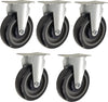 This caster has a fixed polypropylene wheel. The mounting plate dimensions are 3.75” x 2.5” and the wheel has a 5” diameter and is 1.5” thick.