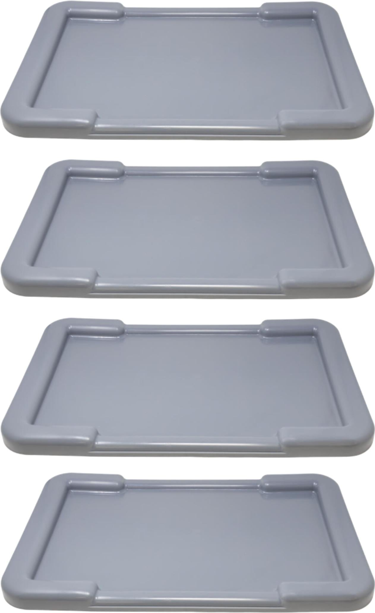 Keep your meat lug tote boxes securely covered with the Omcan Gray Lid, designed for durability and convenience. Made from high-density polyethylene, these lids are FDA approved and built to withstand extreme temperatures, making them ideal for food processing and storage environments. Each pack includes 4 lids, offering a practical solution for maintaining hygiene and organization in commercial kitchens and meat processing facilities.