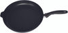 The cookware's pressure-cast aluminum construction provides for uniform heat distribution with no hot spots or warping - even if the pan is placed under cold running water right off the stove. Each piece has a perfectly flat base for use on any ceramic, gas or electric cooktop (induction series also available.)