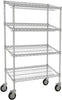 Slanted Shelf Merchandiser, mobile, 24"W x 18"D x 69"H, (4) slanted wire shelves with plastic clips, (4) posts, chrome finish, 5" swivel casters (2 braked). Actual item may differ from image.