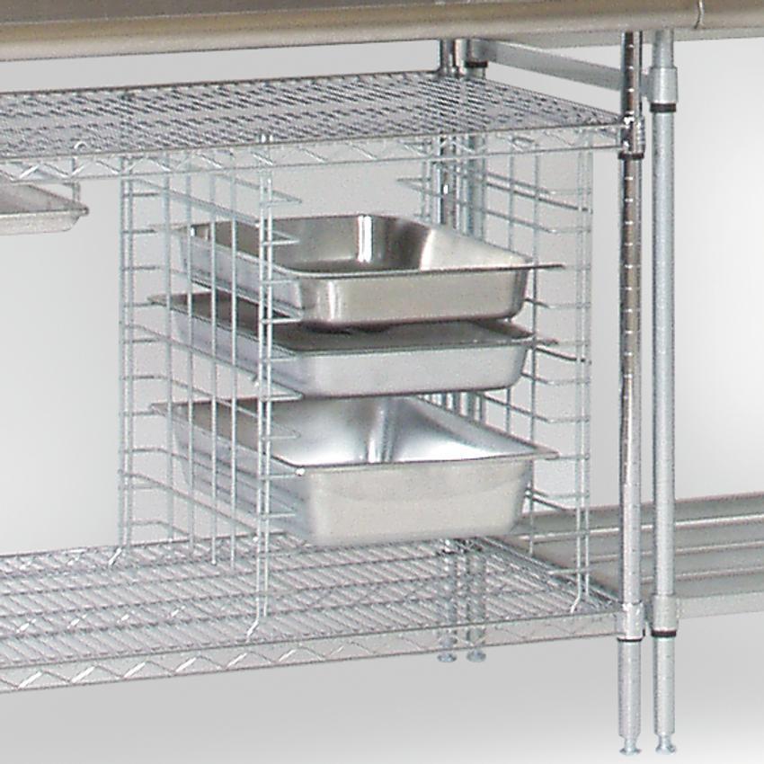 - Valuable space savers, Tray Slide Inserts allow trays and tote pans to be suspended between shelves