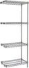 Bright nickel-chrome electro-plating. Best choice for dry storage and display applications. A brilliant finish for the high-tech look. Use where appearance is a major factor. Add-On Shelving Unit, wire, 4-tier, 24"W x 24"D x 63"H, (4) wire shelves with plastic clips, (2) 63"H posts grooved in 1" increments, includes (8) S-hooks, chrome finish. Actual item may differ from image.