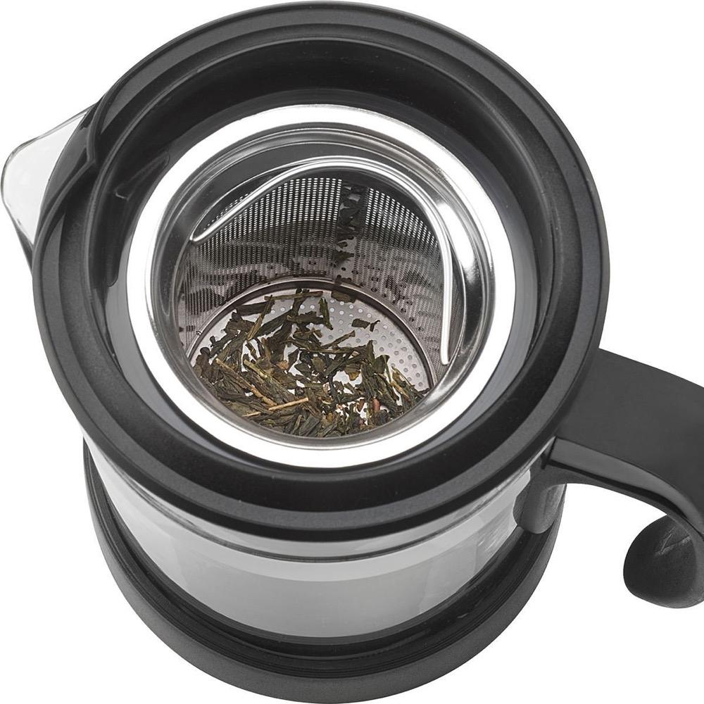 It's tea time! Take a break and infuse your favorite tea. Tea Maker 20 oz in borosilicate glass, Trudeau Maison, comes with an ergonomic handle with heat guard and a sturdy base. Includes a stainless steel coaster. The large infuser basket was designed to be used for all types of teas, loose leaves or tea bags. Its ergonomic handle features a heat guard to keep your fingers safe while you pour yourself a cup of hot tea. The sturdy base will protect your table from heat and scratches.