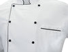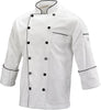 Mercer - Renaissance Poly Cotton White Men's Traditional Neck Chef Jacket with Full Black Piping - M62090WB