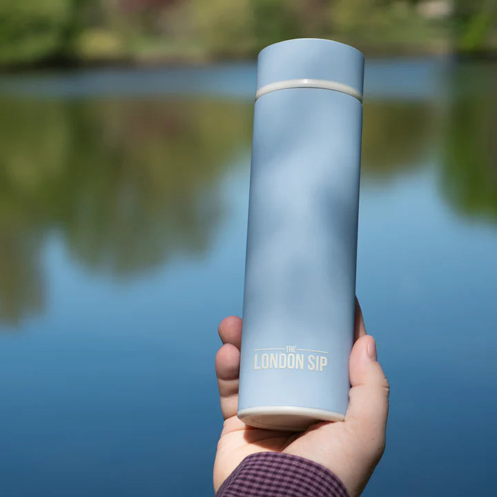Enjoy flavorful tea, coffee, or fruit-infused water wherever life takes you with the sleek and portable The London Sip Tea Infuser Bottle (16 oz). Designed for on-the-go lifestyles, this bottle features a double-wall stainless steel construction that keeps beverages hot for up to 12 hours or cold for extended enjoyment—perfect for commutes, workouts, office days, or outdoor adventures. The standout feature is its extra-long 4″ two-piece stainless steel infuser and strainer system, which accommodates loose-leaf tea, fruit, or coffee grounds—and easily converts into a strainer once the infusion is ready. The tight-fitting gasket lid prevents leaks and spills, while the 16 oz slim profile fits most car cup holders and backpacks. Backed by a lifetime limited warranty and available in stylish colors including classic Blue Sunrise, this bottle blends form and function for everyday use.