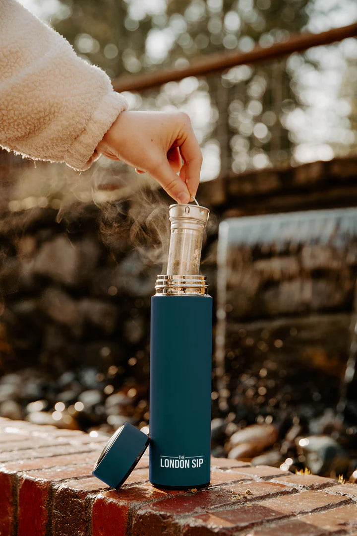 Enjoy flavorful tea, coffee, or fruit-infused water wherever life takes you with the sleek and portable The London Sip Tea Infuser Bottle (16 oz). Designed for on-the-go lifestyles, this bottle features a double-wall stainless steel construction that keeps beverages hot for up to 12 hours or cold for extended enjoyment—perfect for commutes, workouts, office days, or outdoor adventures. The standout feature is its extra-long 4″ two-piece stainless steel infuser and strainer system, which accommodates loose-leaf tea, fruit, or coffee grounds—and easily converts into a strainer once the infusion is ready. The tight-fitting gasket lid prevents leaks and spills, while the 16 oz slim profile fits most car cup holders and backpacks. Backed by a lifetime limited warranty and available in stylish colors including classic Midnight Teal, this bottle blends form and function for everyday use.