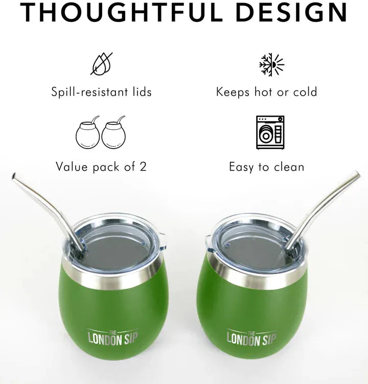 Enjoy the traditional ritual of yerba mate with modern elegance using The London Sip 8 Oz Green Yerba Mate Cup Set. Crafted with a sleek Green finish and a contemporary silhouette, this set is perfect for both seasoned mate drinkers and newcomers alike. The durable and lightweight design makes it easy to handle and clean, while its 8-ounce capacity is ideal for sharing or personal enjoyment. Whether you’re at home or on the go, this set offers a stylish and practical way to enjoy the rich flavors of yerba mate.