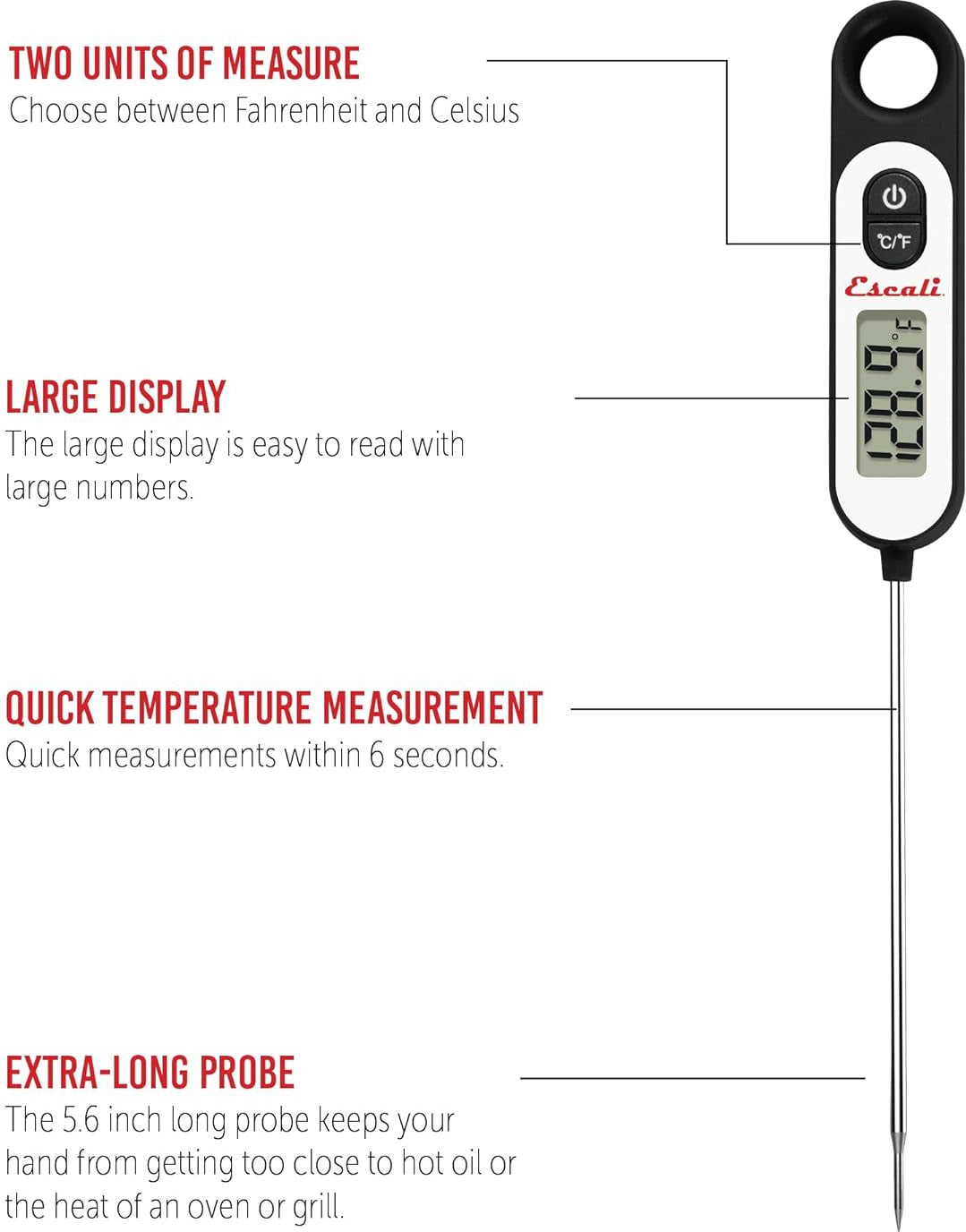 Escali - 5.6" Long Stem Black Digital Thermometer - DH9-B