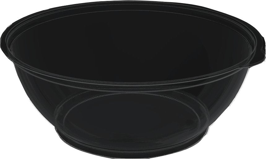 Introducing Tilton Plastic's 25 oz PET Black Plastic Bowl (Model 1333) – a versatile and environmentally conscious solution for your food service needs. Crafted with precision in Canada at our HACCP certified facility, this bowl is designed to meet the highest standards of quality and safety.Constructed from recyclable and 100% post-consumer recycled material (RPET), Tilton Plastic is committed to sustainability. The transparency of the bowl may vary, reflecting our dedication to using recycled materials efficiently. Perfectly suited for cold applications (up to 60°C), this bowl is a leak-proof container, ensuring your culinary creations stay fresh and intact. The innovative design not only promotes a secure seal but also maximizes stacking efficiency, making storage and transportation a breeze.