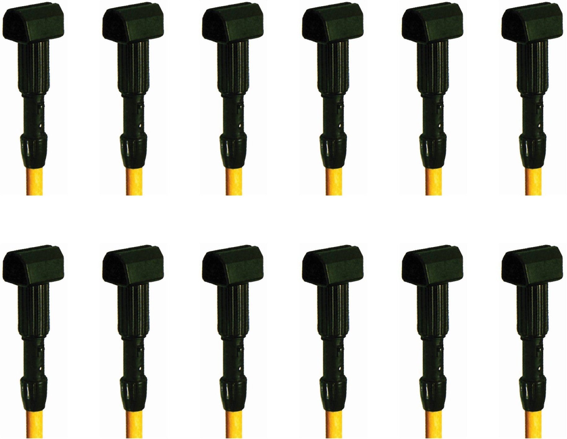 Crafted from high-quality fiberglass material, the handle offers exceptional durability and strength while remaining lightweight. The fiberglass construction ensures sturdiness and resilience, providing long-lasting performance without compromising on maneuverability or user comfort. The Easy Clamp Mop comes in a pack of 12, offering bulk convenience for commercial cleaning services, janitorial companies, or establishments requiring multiple mops for simultaneous cleaning operations. This multipack ensures an ample supply of mops, facilitating uninterrupted cleaning tasks across various areas or surfaces. The mop's compatibility with different types of mop heads adds versatility to its usage, allowing users to select mop heads tailored to specific floor surfaces or cleaning requirements. This adaptability enhances the mop's efficiency and effectiveness for different cleaning tasks, making it suitable for hardwood, tile, laminate, and other smooth surfaces.