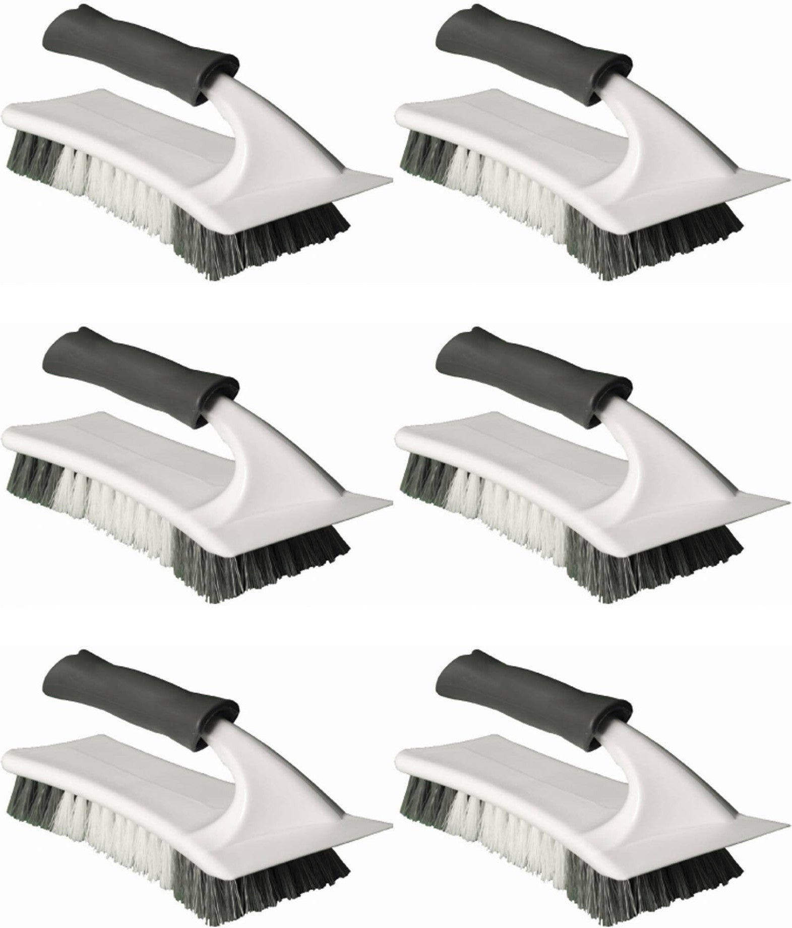 The brush's tough bristles are designed to effectively loosen and remove grime, dirt, and stains from surfaces without causing damage. The bristles' robustness ensures durability and resilience, making them suitable for use on various surfaces such as tiles, grout, concrete, and other hard materials. The ergonomic design of the scrub brush facilitates comfortable and efficient cleaning, minimizing hand fatigue during prolonged use. Its user-friendly design allows individuals to exert adequate pressure while scrubbing without discomfort, contributing to an effective cleaning experience. The TiSA X-Large Iron Handle Scrub Brush is available in a pack of six, providing bulk convenience for households, cleaning professionals, or commercial cleaning services. This multipack ensures a sufficient supply of scrub brushes for various cleaning tasks across different areas or surfaces.