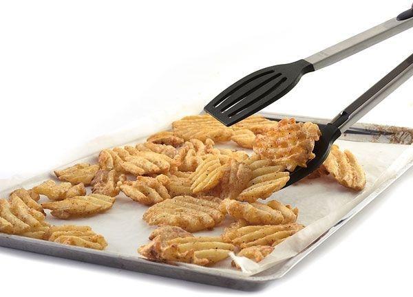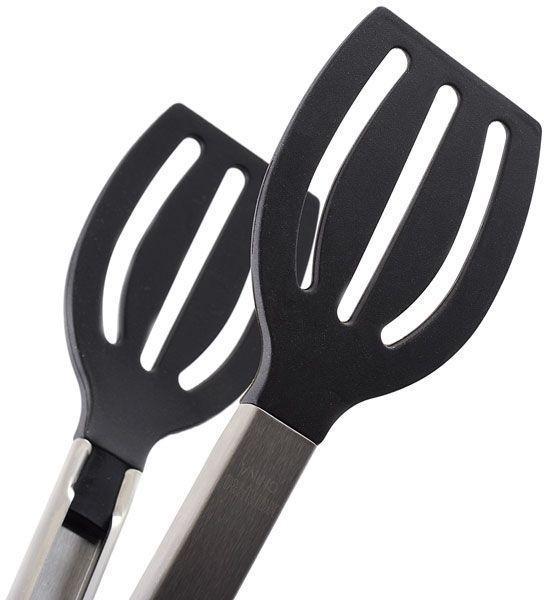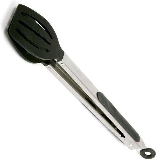 Stainless steel frame with non-slip silicone head and grips. Multipurpose, two tools in one. Use them as tongs when you are gripping and lifting food and as a spatula when you are flipping and serving food. High heat silicone head, heat resistant to 410°F/210°C. Push down on hang hole to open and pull up on hang hole to close. Hang them with the hanging loop after use for space saving. Dishwasher safe.