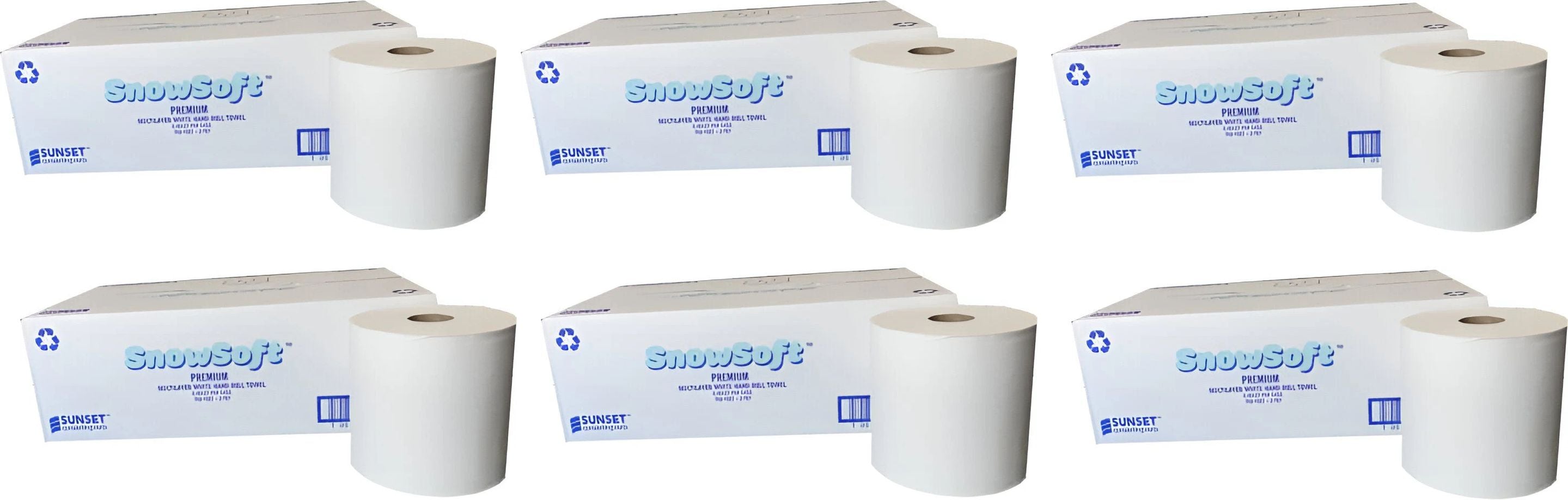 Introducing the Snow Soft 700 Feet Premium White Roll Towel, a superior addition to your cleaning essentials. Each roll spans an impressive length of 700 feet, ensuring extended usage and convenience for various cleaning tasks. Crafted in a pristine white hue, this roll towel adds a clean and professional touch to any environment it serves. Whether for commercial or residential use, its premium quality and durability guarantee reliability in maintaining cleanliness and hygiene. Packaged conveniently in cases containing 6 rolls, this offering stands as a reliable and cost-effective choice, catering to the needs of various settings, from busy households to commercial spaces.